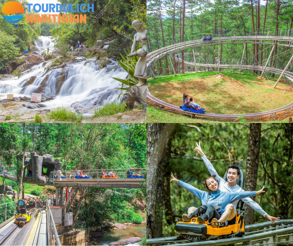 - Khu du lịch Thác Datanla: một trong những thác nước đẹp và nổi tiếng nhất Đà Lạt. Datanla gây ấn tượng bởi dòng nước trắng xóa len qua vách đá, tạo nên khung cảnh vừa hùng vĩ vừa thơ mộng. Tại đây, quý khách có thể tham gia các trò chơi mạo hiểm như trượt máng, leo dây vượt thác hay đi cáp treo (chi phí tự túc), hứa hẹn mang đến những phút giây trải nghiệm đầy sôi động và đáng nhớ giữa đại ngàn Tây Nguyên.