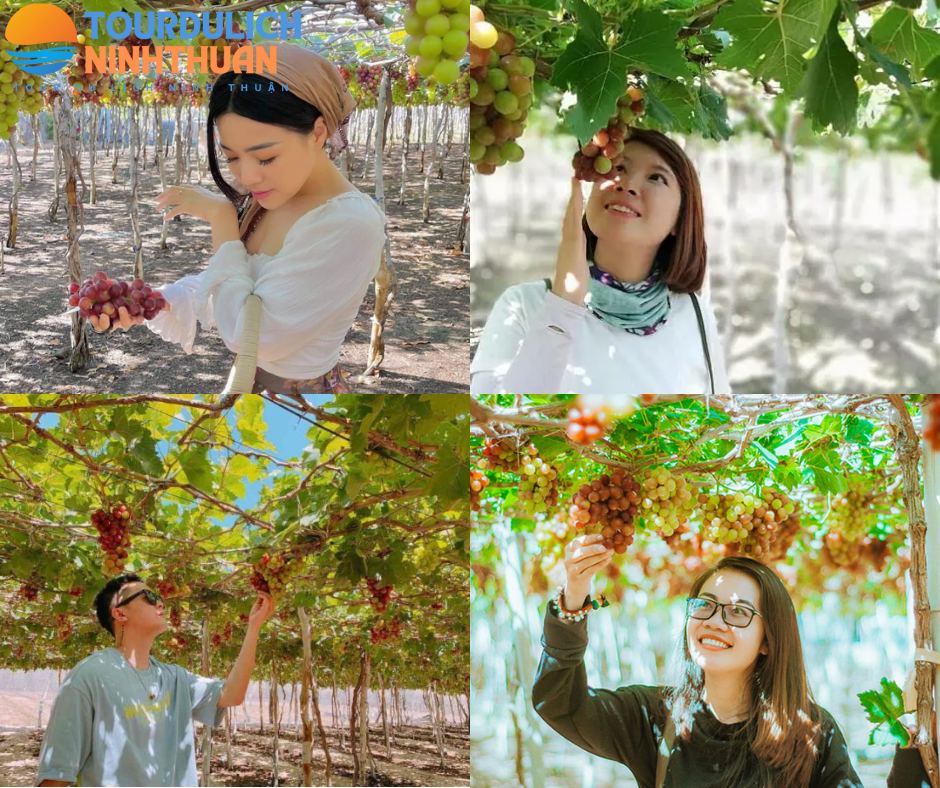 - Vườn Nho Thái An: điểm đến không thể bỏ qua khi nhắc tới Ninh Thuận. Tại đây, Quý khách có thể tự tay hái những chùm nho căng mọng, tươi ngon ngay trên cây, thưởng thức ngay tại vườn và cảm nhận vị ngọt thanh tự nhiên. Ngoài ra, du khách còn có thể mua về làm quà, gửi gắm niềm vui và sự chăm chút đến người thân, bạn bè.