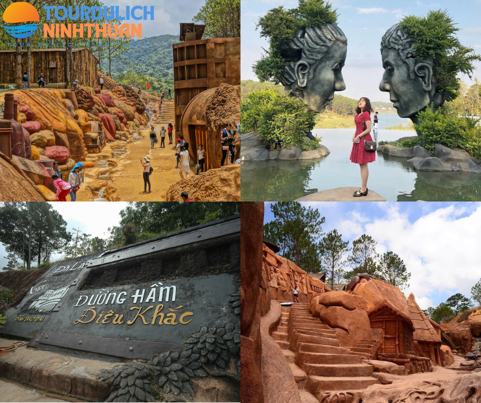 - Đường hầm điêu khắc (còn gọi là đường hầm đất sét, đường hầm đất đỏ): điểm check-in độc đáo bậc nhất Đà Lạt, nơi từng khối đất đỏ bazan được khéo léo chạm khắc thành những câu chuyện sống động về lịch sử và văn hóa phố núi. Du khách sẽ được chiêm ngưỡng những công trình sáng tạo, vừa mang đậm dấu ấn nghệ thuật, vừa gợi cảm xúc khám phá và trầm trồ.